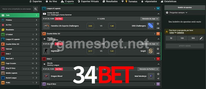 A aposta 34Bet oferece aos jogadores a experiência mais conveniente de apostas em eSports!